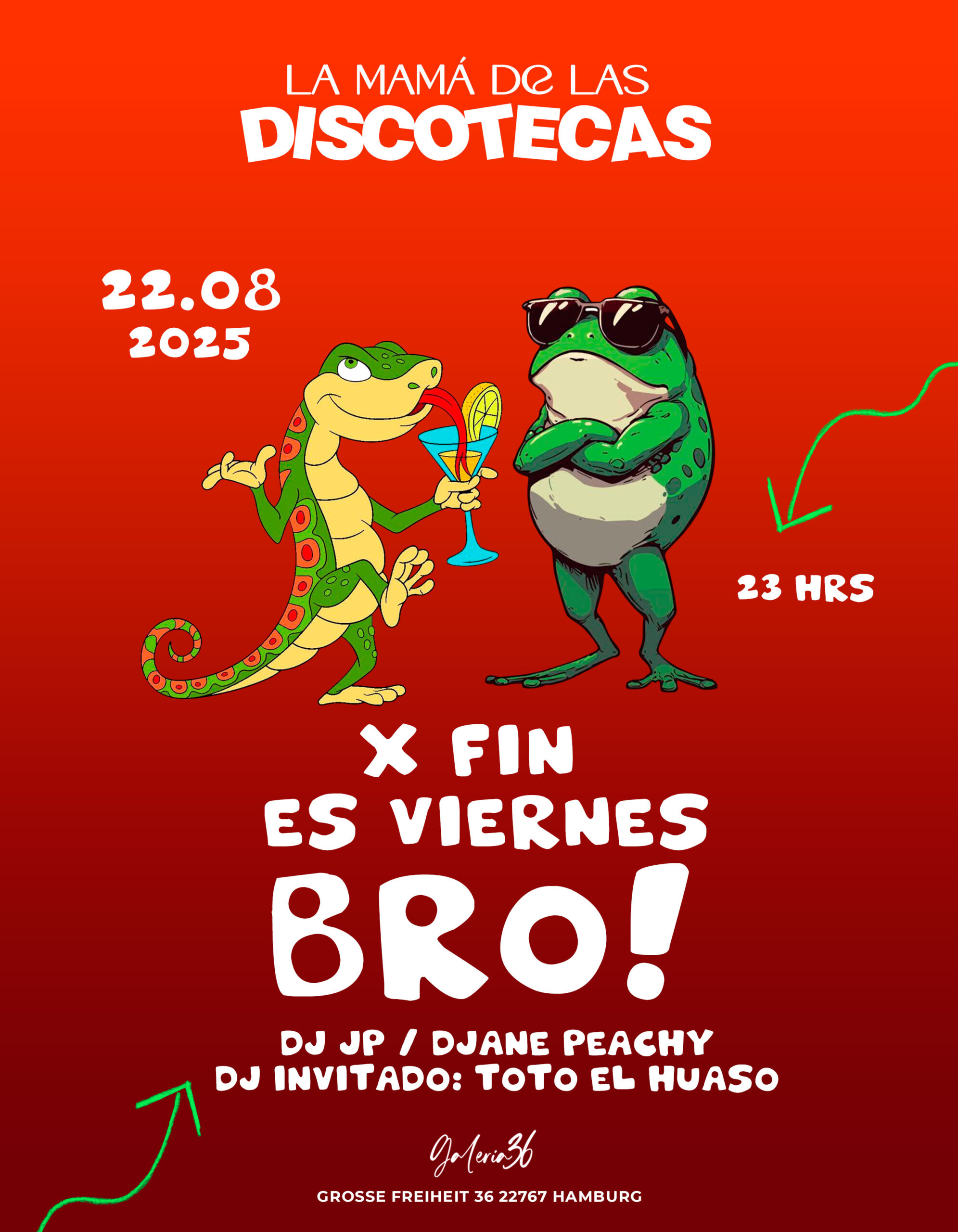 En los últimos años, Hamburgo ha visto crecer la influencia de la cultura latina en su vida nocturna, consolidando a Galeria 36 como un punto de encuentro imprescindible para los amantes de las fiestas con sabor latino. Eventos como Al fin es viernes Bro! reflejan esta tendencia, reuniendo a DJs, artistas y público en una atmósfera vibrante que conecta con las raíces y la energía de la comunidad.